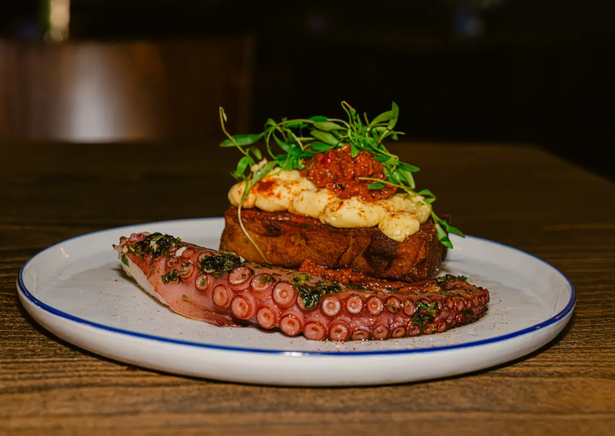 At Casa Blu, nearly every dish meets the flame. We cook exclusively with beef tallow and olive oil. No seed oils. No shortcuts. Our open kitchen invites guests into the process — the fire is part of the experience.